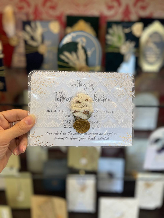 🔸 تزئین: گل طبیعی + مهر طلایی قلبی