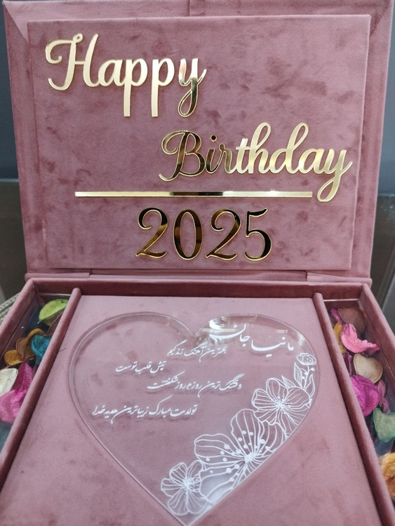 - طراحی داخل جعبه: عبارت طلایی “Happy Birthday 2025” با متریال آینهای براق« مولتی استایل» قابلیت شخصی سازی سال تولد