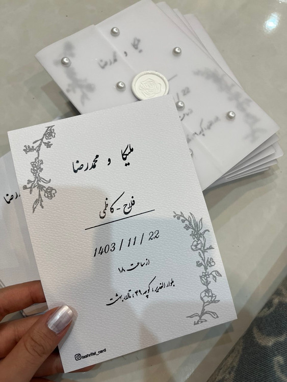 تمامی نوشته های داخل و بیرون کارت قابل تغییر است که متناسب با اطلاعات ثبتی شما طراحی و چاپ می شود و قبل از چاپ ، عکس متن طراحی شده( در تلگرام یا واتساپ) برایتان ارسال می شود تا تایید کنید.