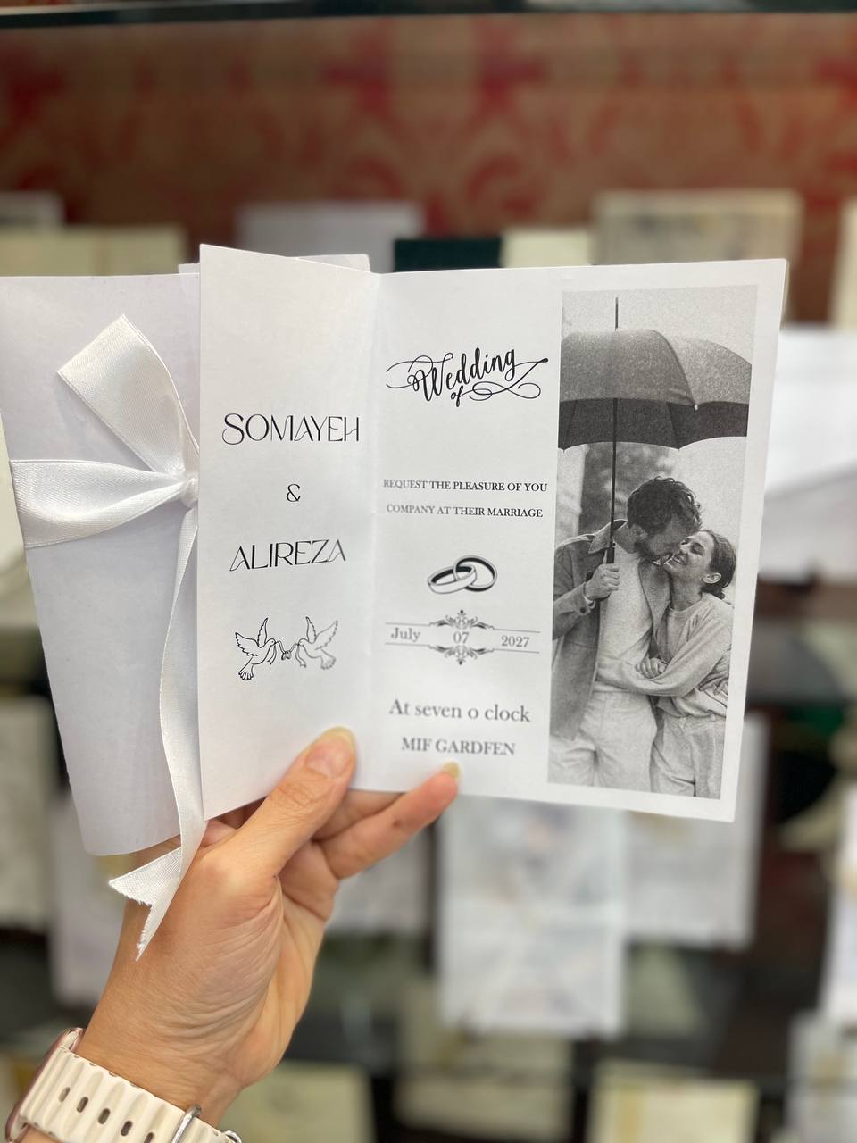تمامی نوشته های داخل و بیرون کارت قابل تغییر است که متناسب با اطلاعات ثبتی شما طراحی و چاپ می شود و قبل از چاپ ، عکس متن طراحی شده( در تلگرام یا واتساپ) برایتان ارسال می شود تا تایید کنید.