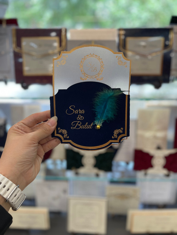 - نگبن طلايى رنگ به همراه پر مختلف متناسب با رنگ كارت